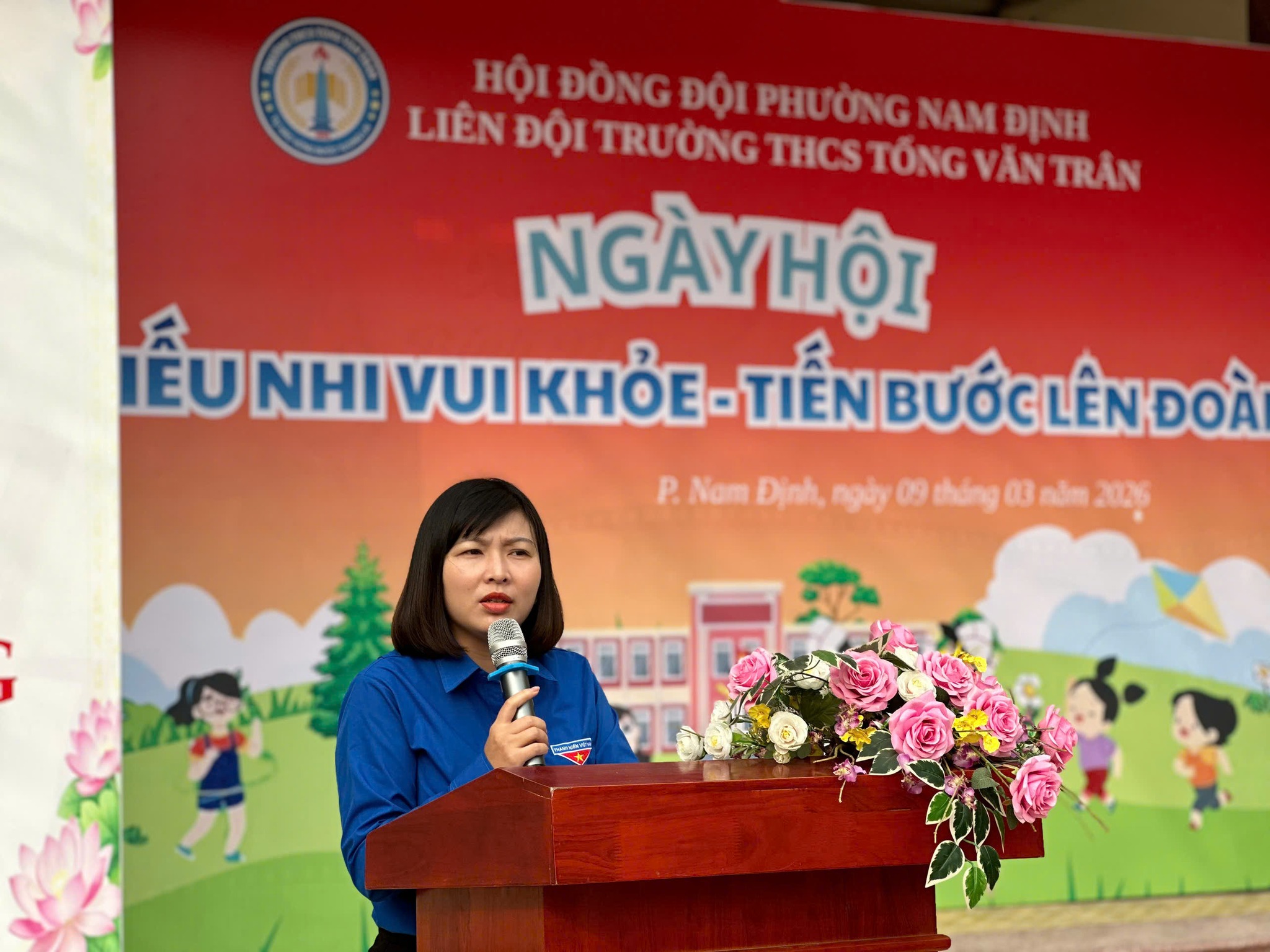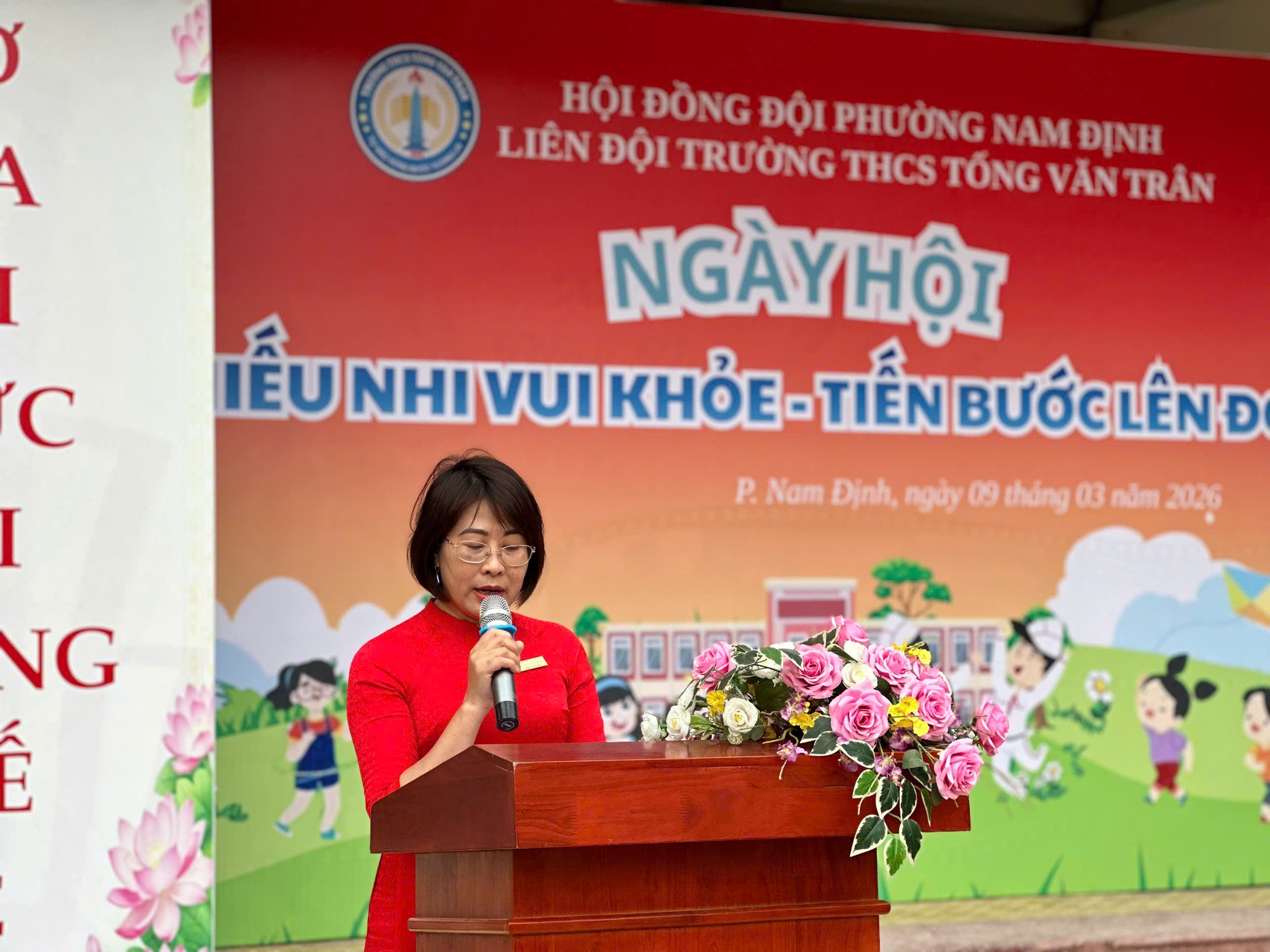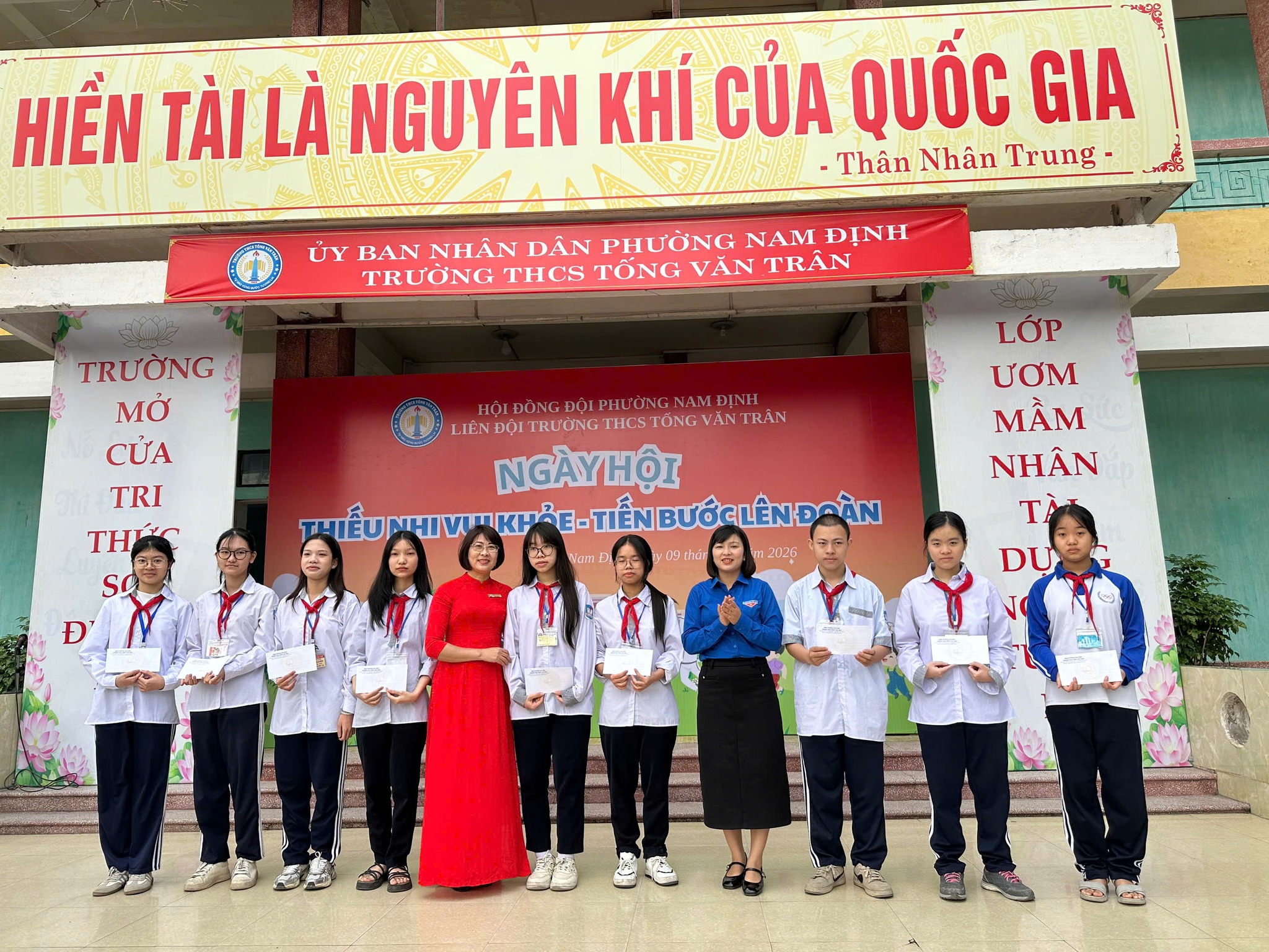 Thực hiện Kế hoạch của Đoàn phường Nam Định và kế hoạch năm học của nhà trường, Trường THCS Tống Văn Trân đã tổ chức thành công Ngày hội “Thiếu nhi vui khỏe – Tiến bước lên Đoàn” vào lúc 7h30 ngày 09/3/2026 tại điểm cấp phường.