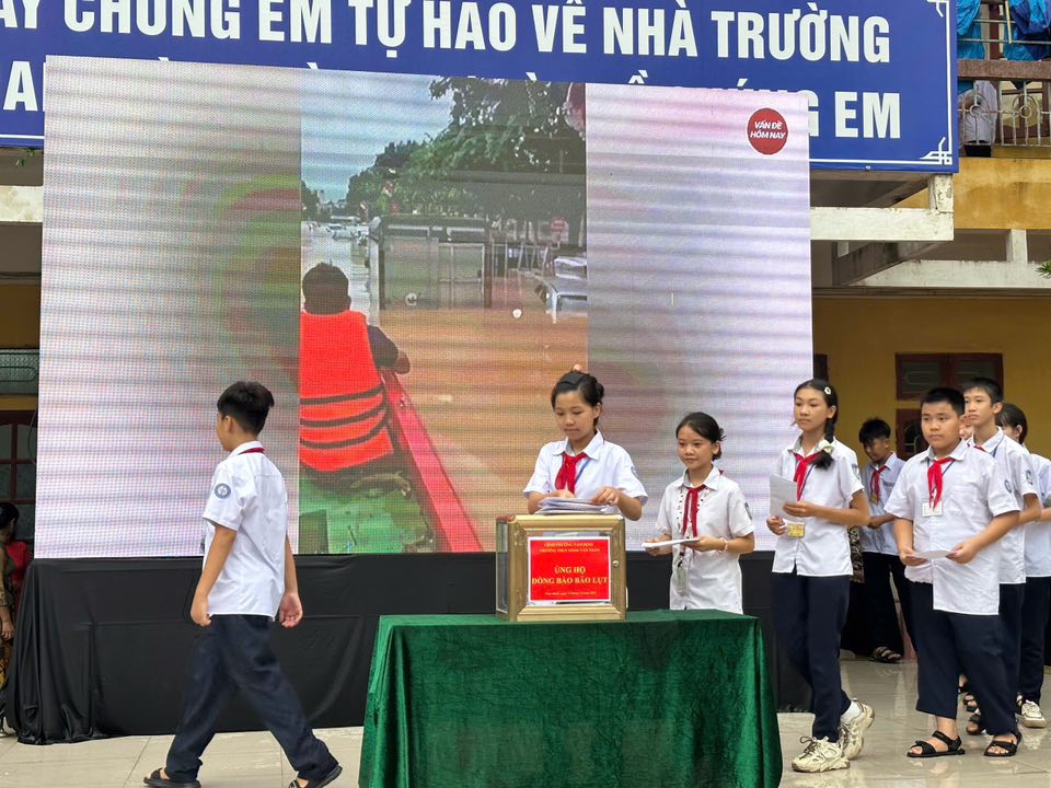 Trong những ngày qua các tỉnh miền Bắc chịu ảnh hưởng nặng nề của mưa, lũ. Hưởng ứng lời kêu gọi của UB MTTQ VN, UBMTTQ tỉnh Ninh Bình và phường Nam Định, vào ngày 13 tháng 10 năm 2025 thầy và trò trường THCS Tống Văn Trân đã tổ chức buổi Lễ quyên góp ủng hộ đồng bào vùng lũ lụt theo phương châm: “Lá lành đùm lá rách”. Về dự với nhà trường có: