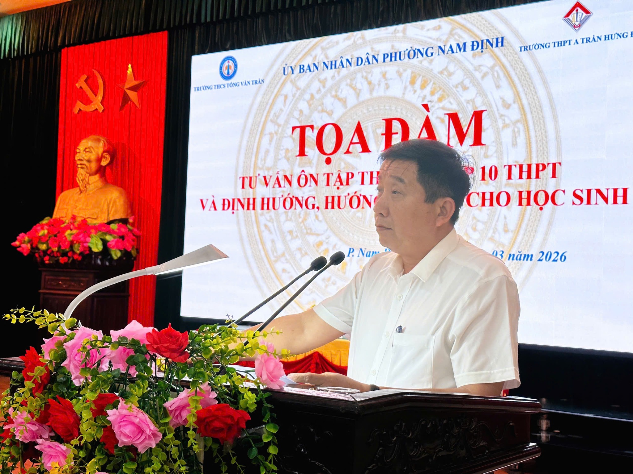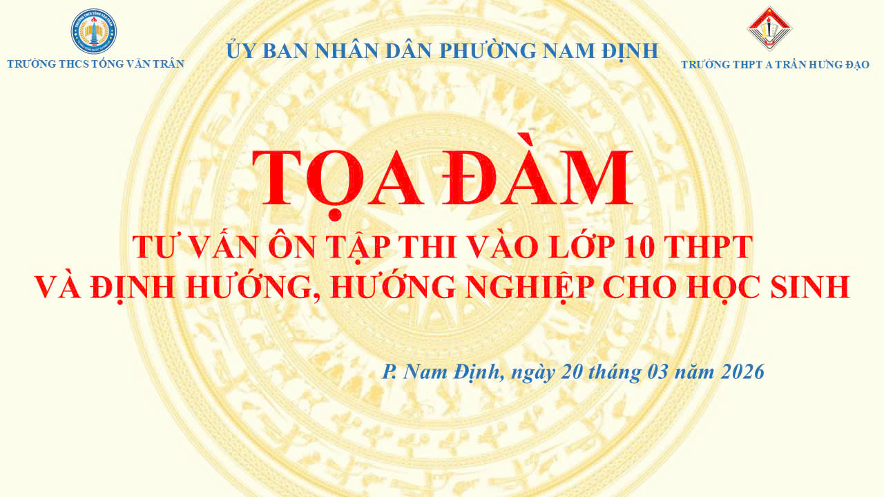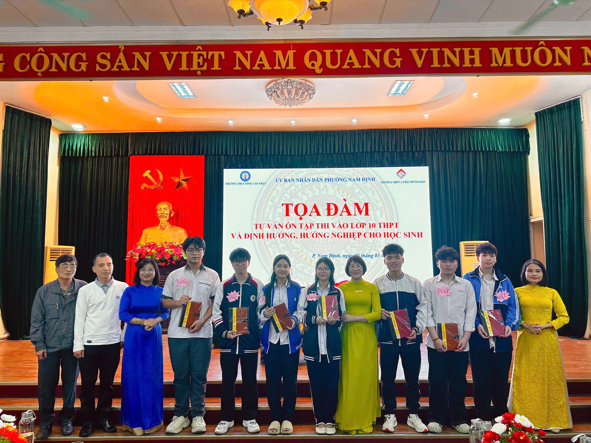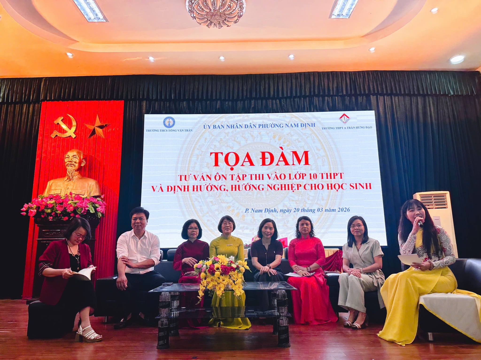 Nhằm hỗ trợ học sinh lớp 9 chuẩn bị tốt cho kỳ thi vào lớp 10 THPT và định hướng nghề nghiệp trong tương lai, Trường THCS Tống Văn Trân đã phối hợp cùng Trường THPT Trần Hưng Đạo và Trung tâm GDNN – GDTX Nam Định tổ chức buổi tọa đàm ý nghĩa, thiết thực. Chương trình không chỉ cung cấp thông tin cần thiết về kỳ thi tuyển sinh mà còn giúp học sinh có cái nhìn rõ ràng hơn về con đường học tập và nghề nghiệp trong tương lai.