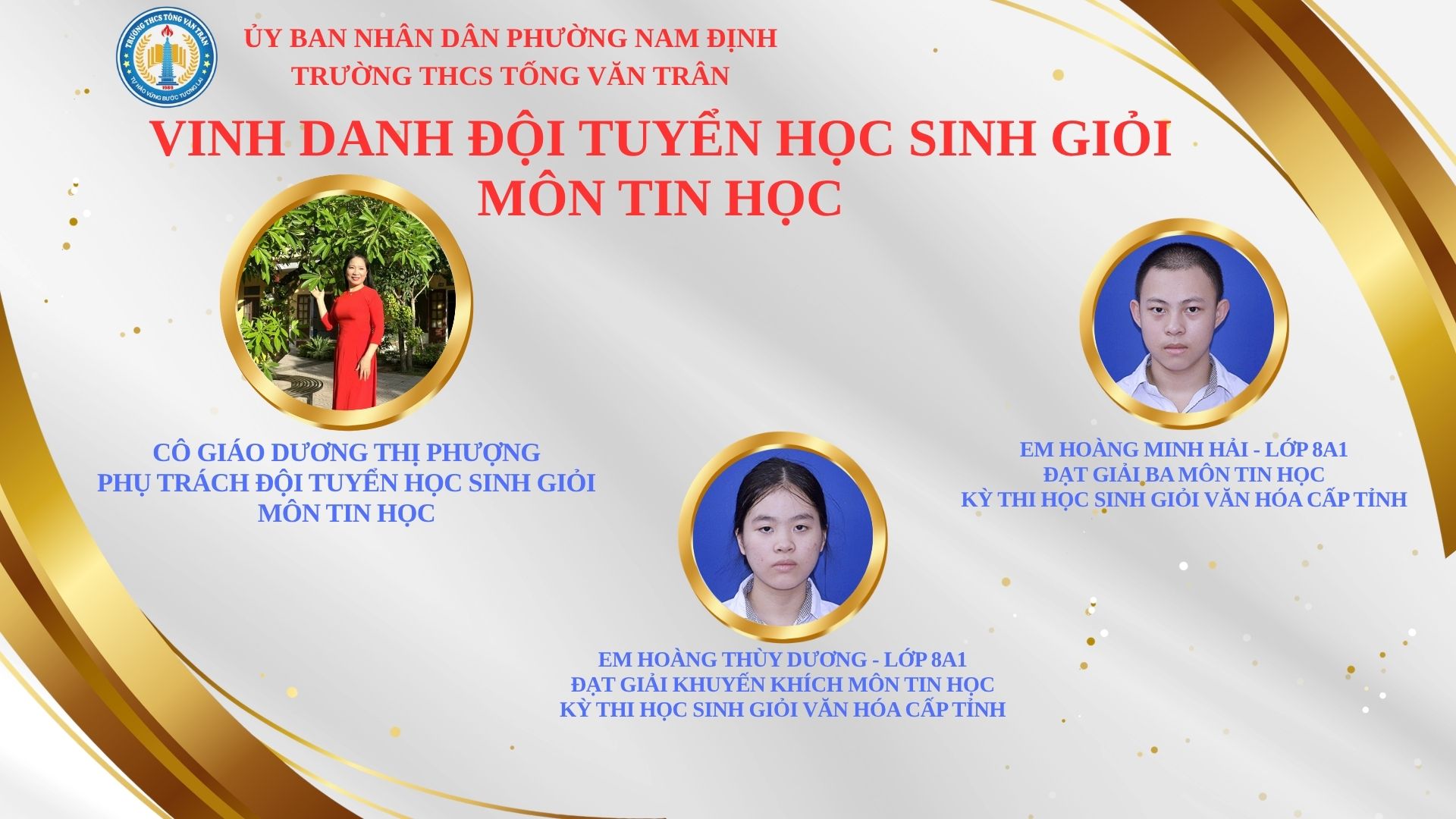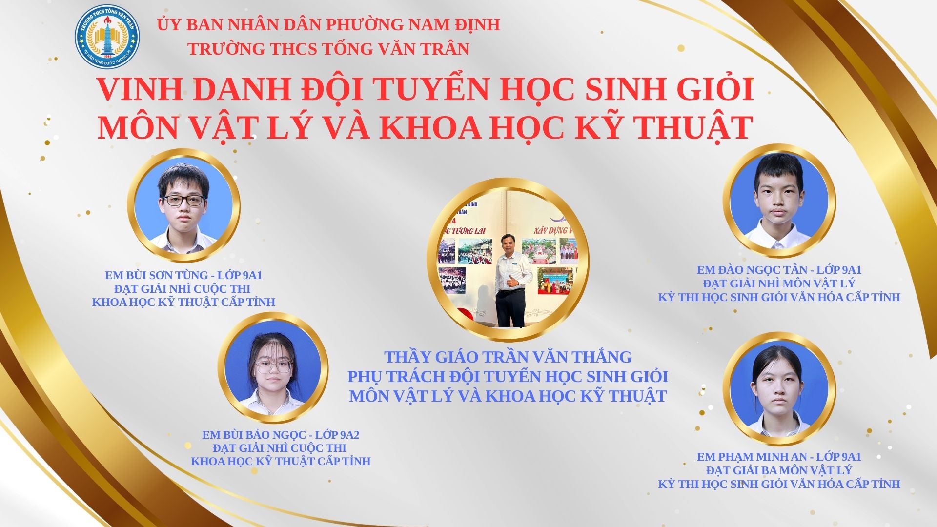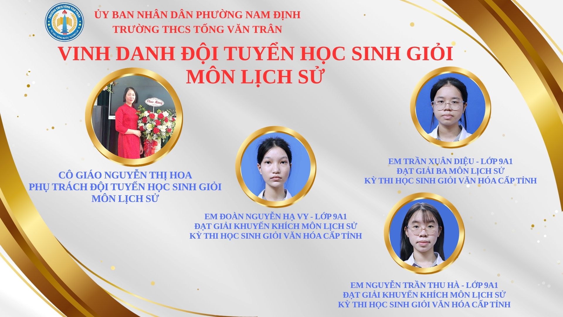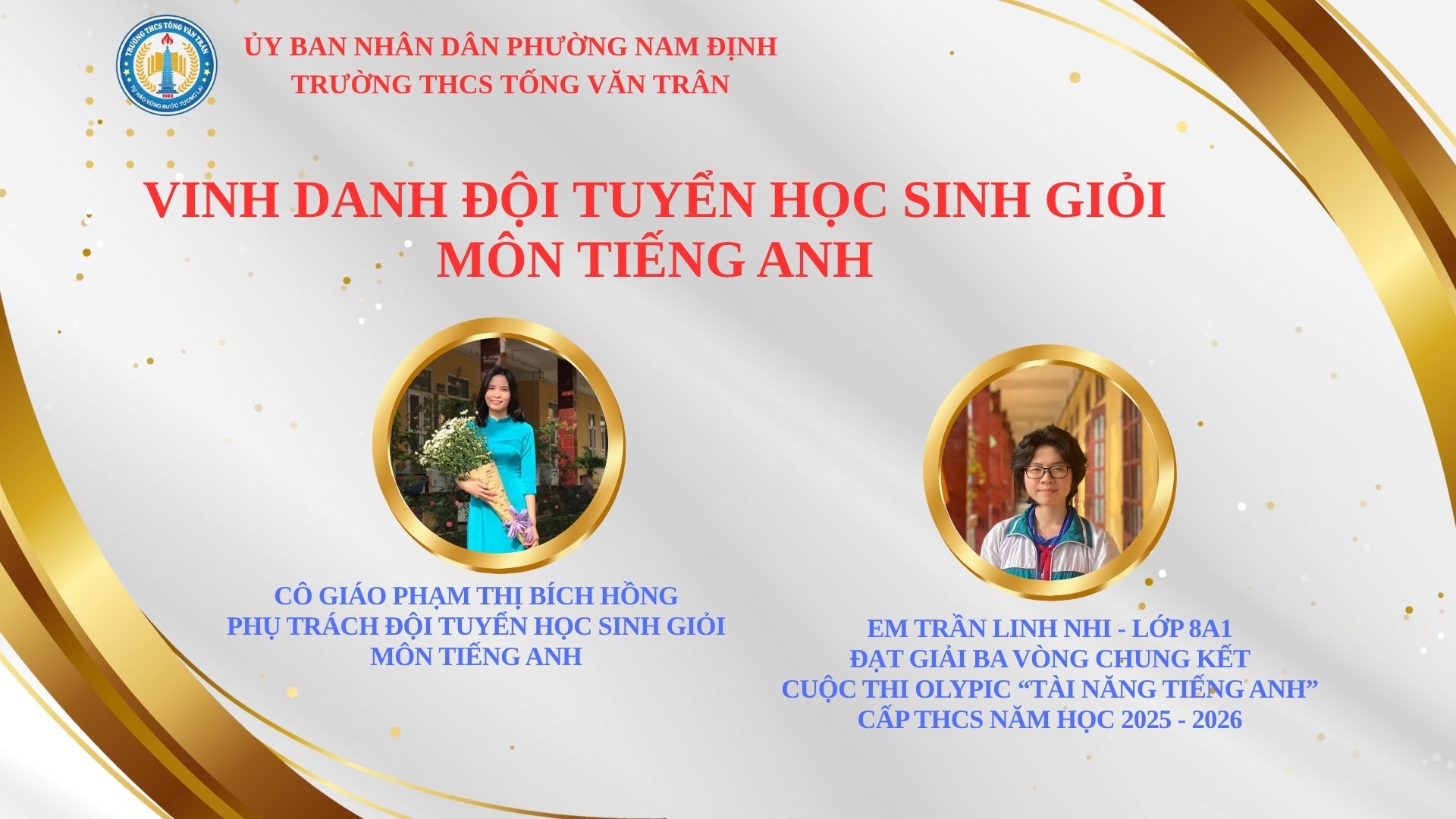 Thực hiện Kế hoạch năm học 2025–2026, ngay từ đầu năm, Trường THCS Tống Văn Trân đã chủ động xây dựng kế hoạch, thành lập và tổ chức bồi dưỡng các đội tuyển học sinh giỏi. Với sự đầu tư bài bản, tinh thần trách nhiệm cao của đội ngũ giáo viên cùng sự nỗ lực không ngừng của học sinh, nhà trường đã gặt hái được nhiều thành tích nổi bật, khẳng định chất lượng giáo dục mũi nhọn.